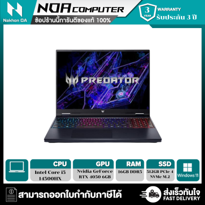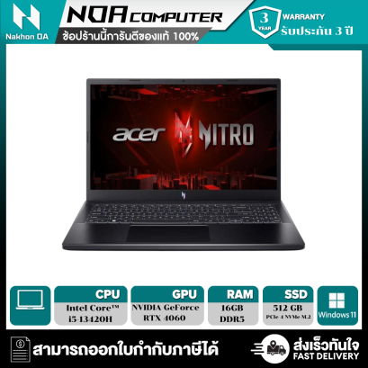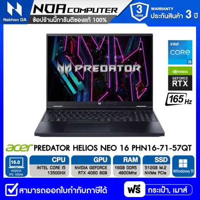 Intel Core i5-13500HX/16GB DDR5/ 512GB PCIe/NVMe M.2 SSD/16" WQXGA IPS 165Hz/Nvidia GeForce RTX 4060 8GB GDDR6/Windows 11 Home /รับประกัน 3Y