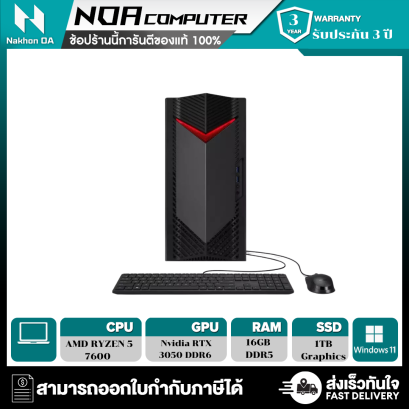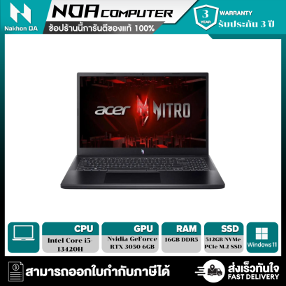 หน้าจอ 15.6" FHD IPS 165Hz CPU AMD Ryzen 5 6600H Processor หน่วยประมวลผลกราฟิก NVIDIA GeForce RTX 3050 Graphics SSD ความจุ 512GB/ RAM 32GB DDR5 ระบบปฏิบัติการ Windows 11 Home / ประกันเครื่อง 3ปี