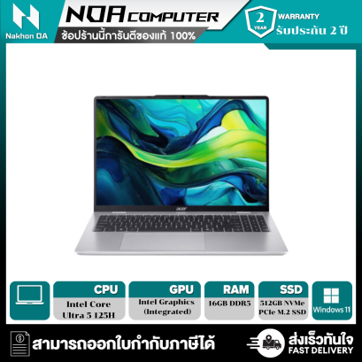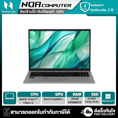 หน้าจอแสดงผลขนาด 16.0" ระดับ WUXGA IPS หน่วยประมวลผล CPU Intel Core i3-1305U Processor หน่วยประมวลผลกราฟิก Intel UHD Graphics (Integrated) SSD ความจุ 512GB / RAM DDR5 8GB Windows 11 Home มีซอร์ฟแวร์ Microsoft Office Home & Student 2024 ในเครื่อง