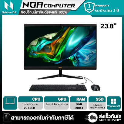 CPU Intel Core i5-1334U/ 8GB DDR4/ 512GB NVMe PCIe M.2 SSD/ 23.8" FHD (1920 x 1080) Non-Touch/ Intel Graphics (Integrated)/ Windows 11 Home + Office Home & Student
