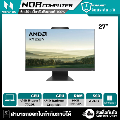 CPU AMD Ryzen 5 7520U/ 16GB LPDDR5/ 512GB NVMe PCIe M.2 SSD/ 27" FHD (1920x1080) Non-Touch/ AMD Radeon Graphics (Integrated)/ W11 H+ 365 Basic