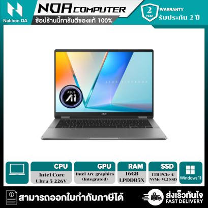 CPU Intel Core Ultra 5 226V/ Ram16GB LPDDR5X (On Board)/1TB PCIe 4/NVMe M.2 SSDหน้าจอ14" FHD (1920 x 1200) OLED 60Hz 400nits 0.2ms 100% DCI-P3/ Intel Arc graphics (Integrated)/ ระบบปฎิบัติการณ์ Windows 11 Home / Office Home 2024 / Microsoft 365 Basic