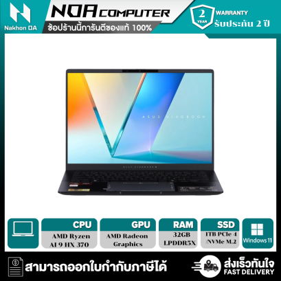 CPU AMD Ryzen AI 9 HX 370/ 32GB LPDDR5X (On Board)/1TB PCIe 4/NVMe M.2/ 14" 3K (2880 x 1800) OLED 120Hz 100% DCI-P3/ AMD Radeon Graphics (Integrated)/ Windows 11 Home / Office Home & Student 2021 / Microsoft 365 Basic