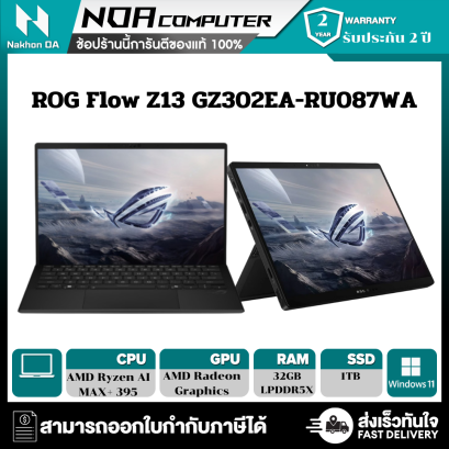 ASUS ROG FLOW Z13 เป็นโน้ตบุ๊ค 2-in-1 AI Gaming ขนาดพกพาที่แรงที่สุด มาพร้อมจอ 2.5K 180Hz ให้ภาพคมชัดและลื่นไหล ซีพียู AMD Ryzen AI MAX+ 395 และRAM 32GB ช่วยให้ทำงานและเล่นเกมได้อย่างเต็มประสิทธิภาพ เหมาะสำหรับสายเกมเมอร์และมืออาชีพกับแบตเตอรี่ที่087WAยาวนานสามารถจัดการงานหรือการเล่นเกมได้แบบลื่นไหล