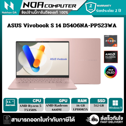 CPU AMD Ryzen 5 7535HS/AMD Radeon 660M/RAM16 GB LPDDR5X /14.0 inch (2880x1800) 2.8K/512 GB SSD PCIe M.2 Gen 4/Windows 11 Home+Microsoft Office Home 2024