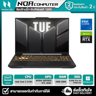 CPU : Intel Core 5 210H / GPU : Nvidia GeForce RTX 3050 / RAM : 16GB DDR4 / SSD : 512GB PCIe 4.0 NVMe M.2 / Display : 16-inch, FHD+ 16:10 (1920 x 1200, WUXGA), IPS-level, Anti-glare display, Refresh Rate:144Hz / Windows 11 Home / warranty : 2 Years