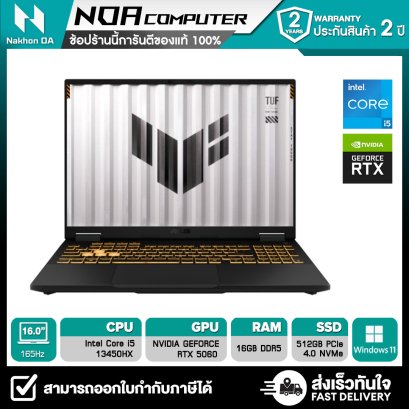 CPU : Intel Core i5-13450HX / GPU : Nvidia GeForce RTX 5060 / RAM : 16GB DDR5 / SSD : 512GB PCIe 4.0 NVMe M.2 / Display : 16-inch, FHD+ 16:10 (1920 x 1200, WUXGA), IPS-level, Anti-glare display, sRGB:100.00%, Adobe:75.35%, Refresh Rate:165Hz / Windows 11 Home / warranty : 2 Years