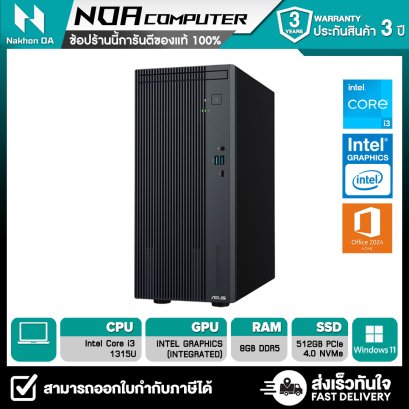 CPU Intel Core i3-1315U/ 8GB DDR4 / 512GB NVMe PCIe M.2 SSD / Intel Graphics (Integrated) / Windows 11 Home / Microsoft Office Home 2024