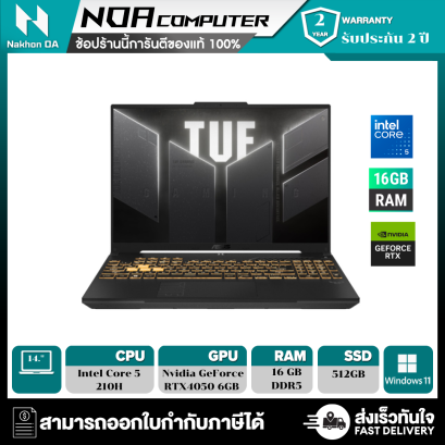 CPU : AMD Ryzen 7 7435HS / GPU : Nvidia GeForce RTX 4050 / RAM : 16GB DDR5 4800MHz / SSD : 512GB PCIe/NVMe M.2 / Display :15.6" FHD IPS Anti-glare 144Hz / Windows 11 Home / warranty : 2 Years
