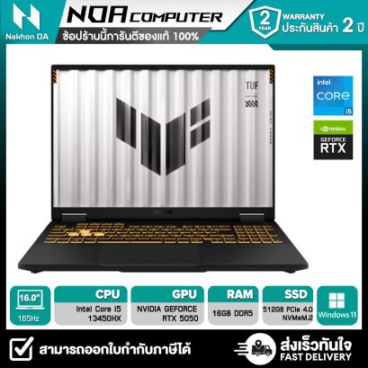 CPU : Intel Core i5-13450HX / RAM : 16GB DDR5 5600MHz SO-DIMM / GPU : Nvidia GeForce RTX 5050 / SSD : 512GB PCIe 4/NVMe M.2 / Display : 16" FHD+ (1920 x 1200, WUXGA) IPS-level 165Hz 300 nits SRGB 100% G-Sync / OS : Windows 11 Home / warranty : 2 Years