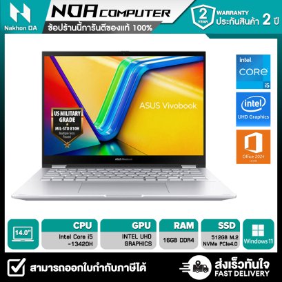 CPU : Intel Core i5-13420H / GPU : Intel UHD Graphics / RAM : 8GB DDR4 on board 8GB DDR4 SO-DIMM / SSD : 512GB M.2 NVMe PCIe 4.0 / Display :14.0-inch, WUXGA (1920 x 1200) 16:10 aspect ratio, IPS-level Panel,Touch screen / Windows 11 Home / Microsoft Office Home 2024 + Microsoft 365 Basic / warranty : 2 Years