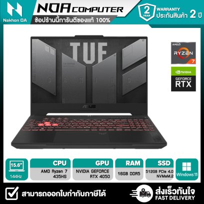 CPU : AMD Ryzen 7 7435HS / RAM : 16GB DDR5 5600MHz / GPU : NVIDIA GeForce RTX 3050 / SSD : 512GB PCIe® 4.0 NVMe™ M.2 / Display : 15.6" FHD IPS Anti-glare 144Hz / Windows 11 Home / warranty : 2 Years