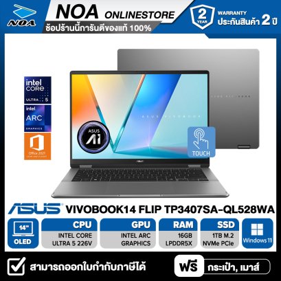 CPU Intel Core Ultra 5 226V/ Ram16GB LPDDR5X (On Board)/1TB PCIe 4/NVMe M.2 SSDหน้าจอ14" FHD (1920 x 1200) OLED 60Hz 400nits 0.2ms 100% DCI-P3/ Intel Arc graphics (Integrated)/ ระบบปฎิบัติการณ์ Windows 11 Home / Office Home 2024 / Microsoft 365 Basic