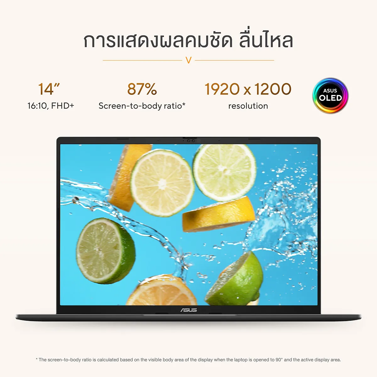 • จอแสดงผล : 14" WUXGA (1920 x 1200) OLED 60Hz 0.2ms 300nits DCI-P3 95%