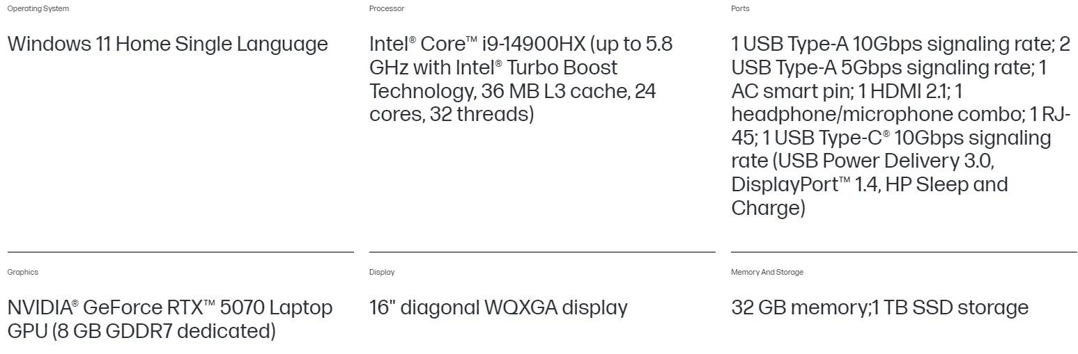 16" WQXGA/CORE i9-14900HX/32GB/SSD 1TB/RTX 5070/WIN11