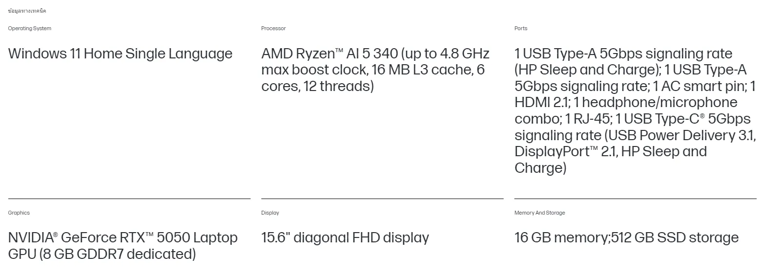 • กราฟิก : Nvidia GeForce RTX5050 8GB GDDR7