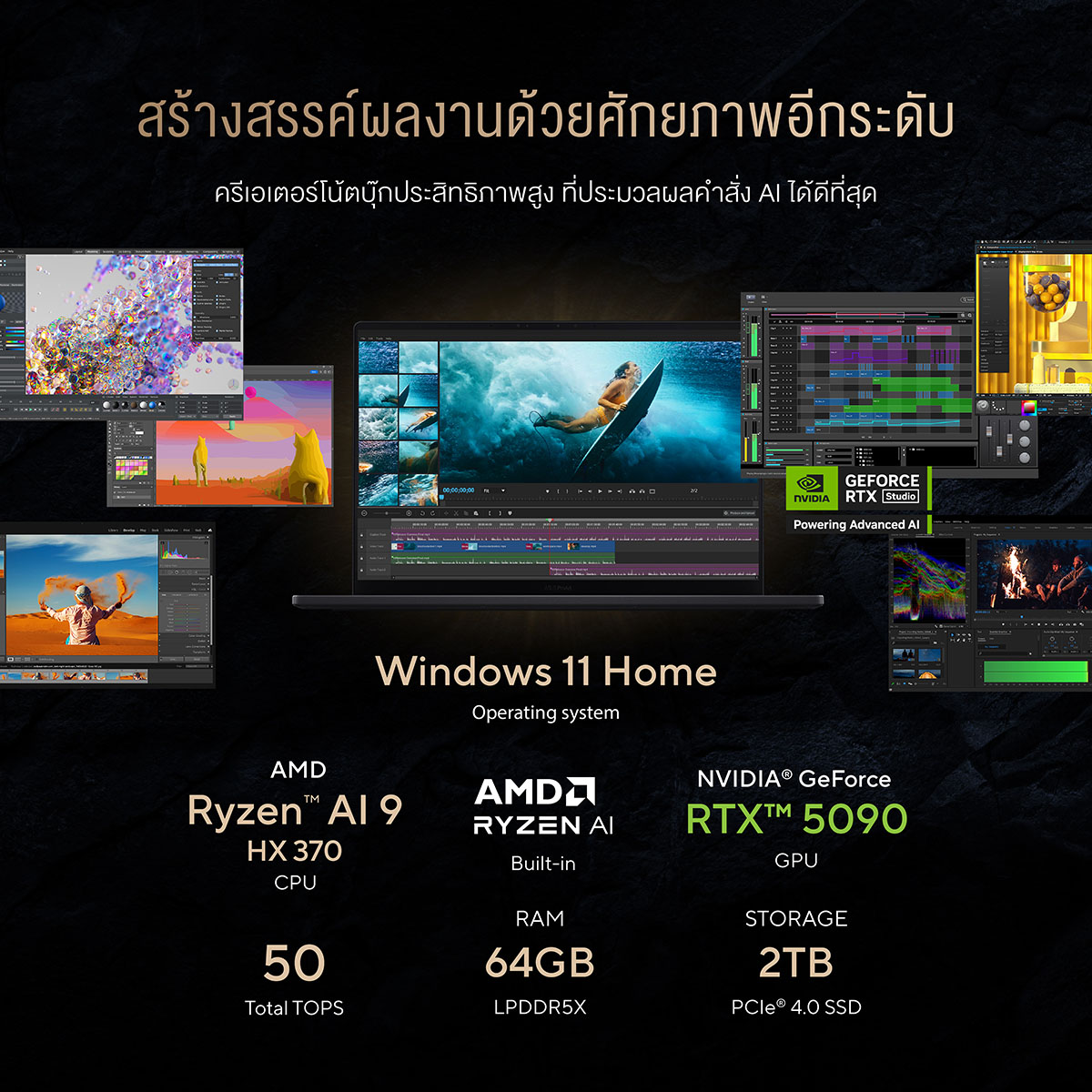 16" 3K OLED/RYZEN AI 9 HX 370/RAM 64GB/SSD 2TB/RTX 5090/WINDOWS 11 + OFFICE