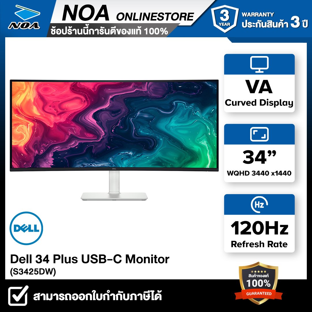 Display : 34" VA Response Time : 1m Resolution : 3440 x 1440 @120 Hz Contrast Ratio : 3000:1 Interface : USB-C x 1, HDMI x 1 มาพร้อมลำโพงคู่ในตัว 10W รองรับการติดตั้งกับขาแขวนคิดผนัง